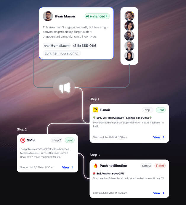 Personalize campaigns across multiple channels—email, ads, and SMS.