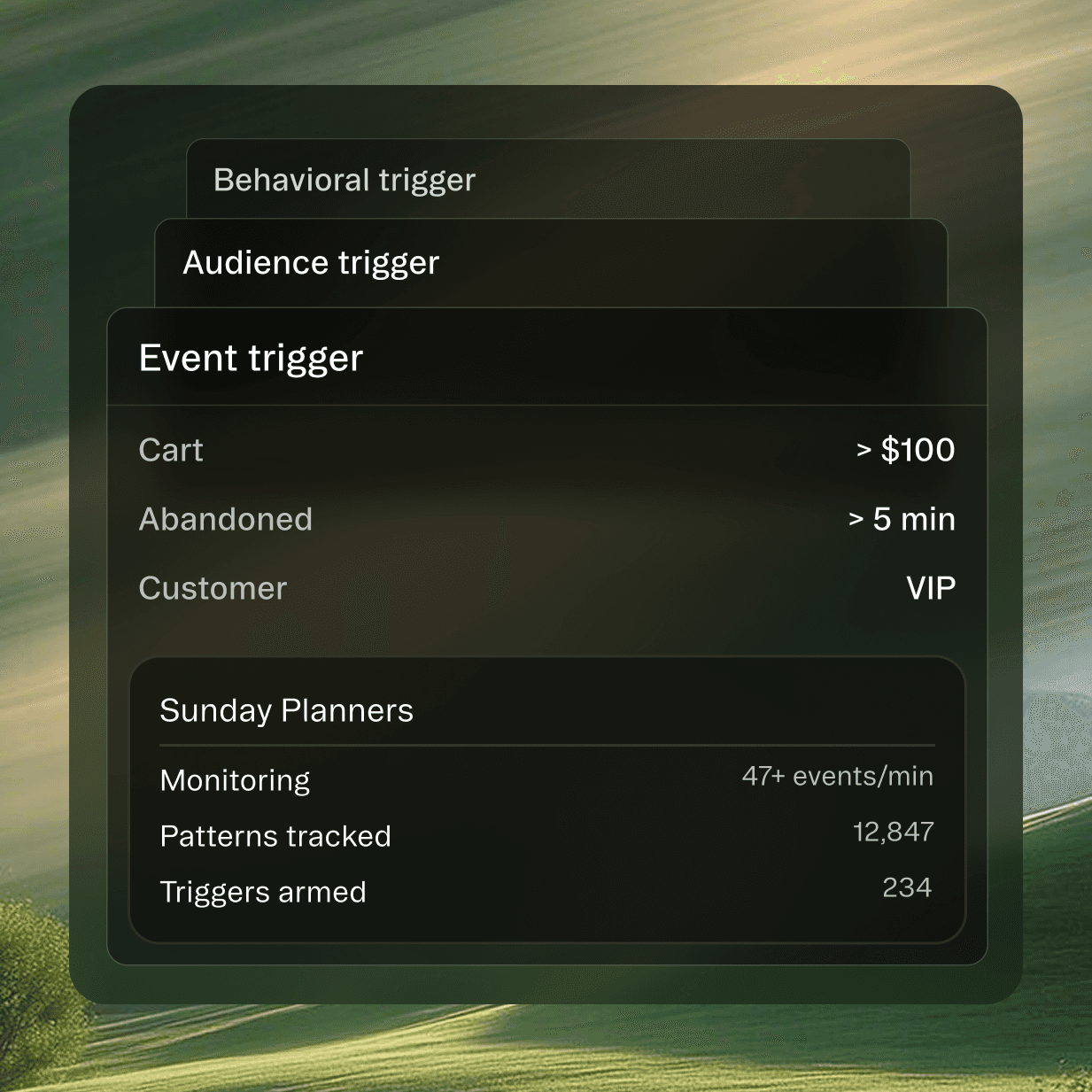 Define your trigger an event, an audience, or a complex behavior. The AI continuously monitors millions of signals, waiting for the perfect moment to act.