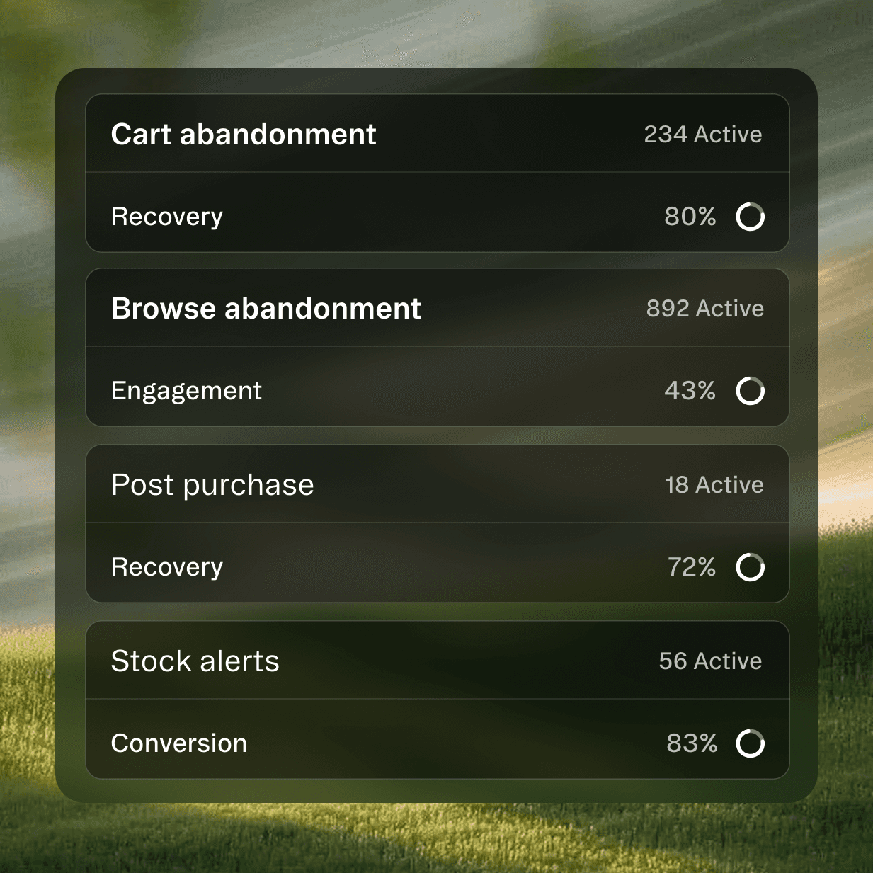 43% "Cart recovery rate (up from 12%)"