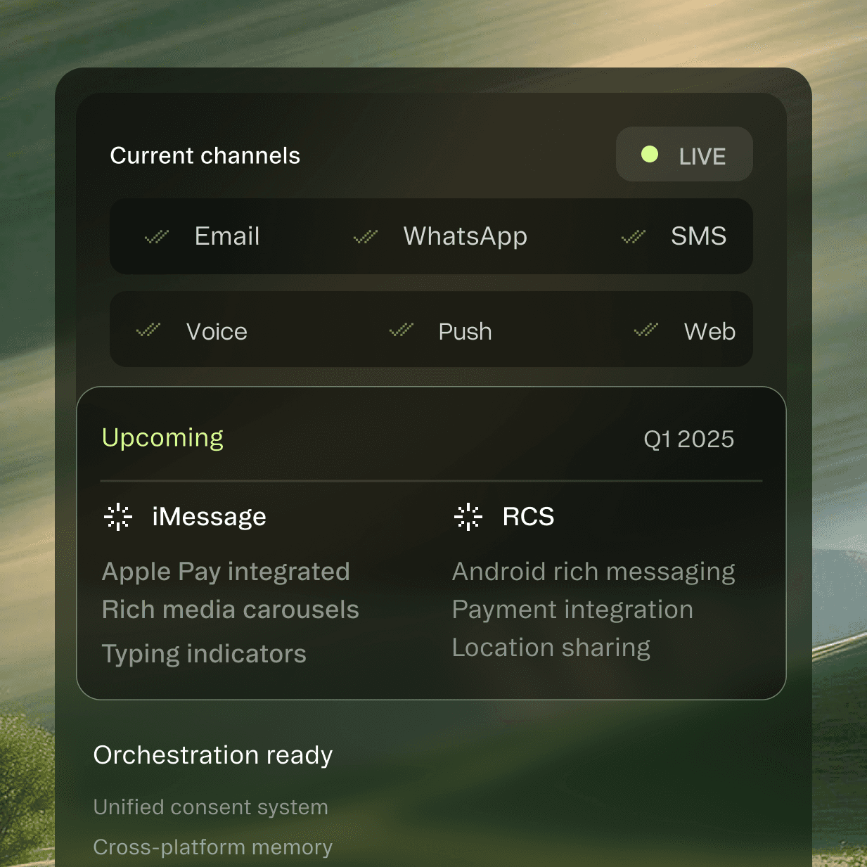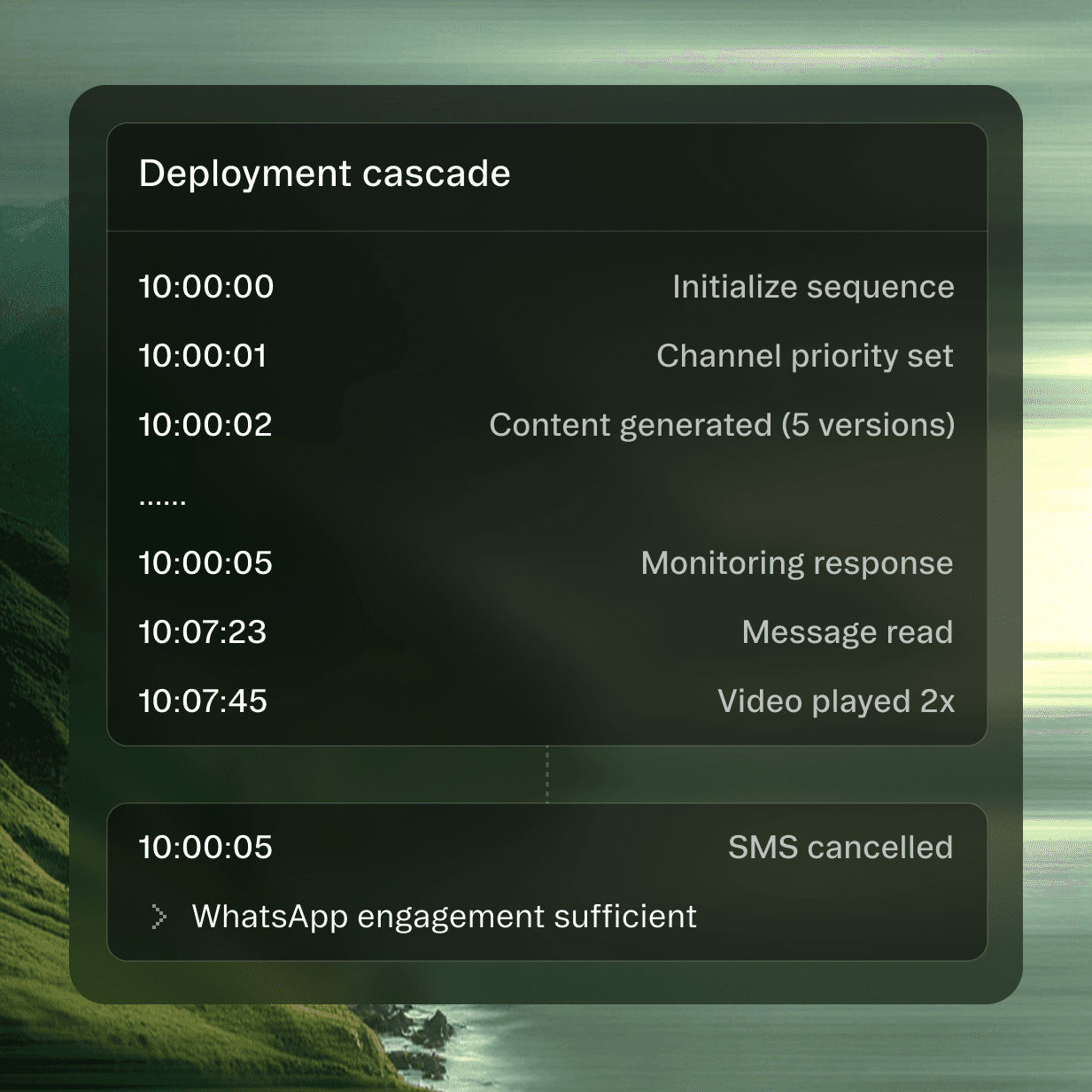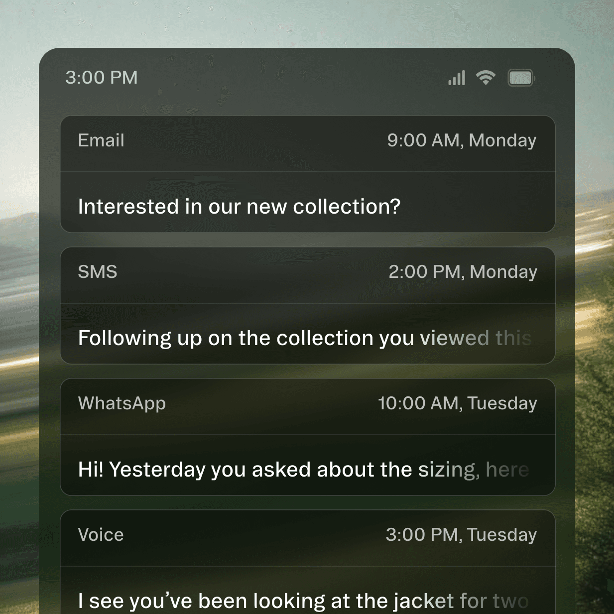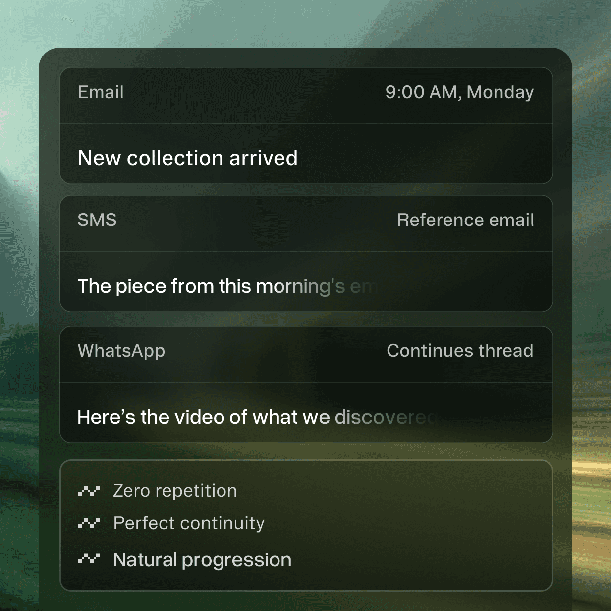 An AI that seamlessly flows between Email, SMS, WhatsApp, Voice, and beyond selecting the perfect channel at the perfect moment, maintaining context across every touchpoint.