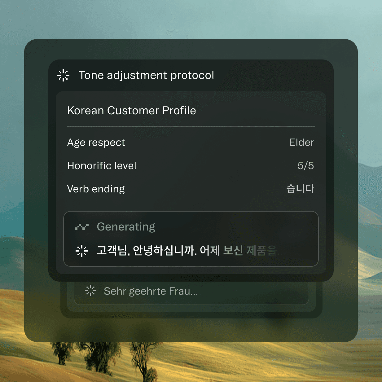 The assistant generates native-level content in milliseconds, adapting tone, formality, and cultural expressions. Each message feels locally written, never translated.