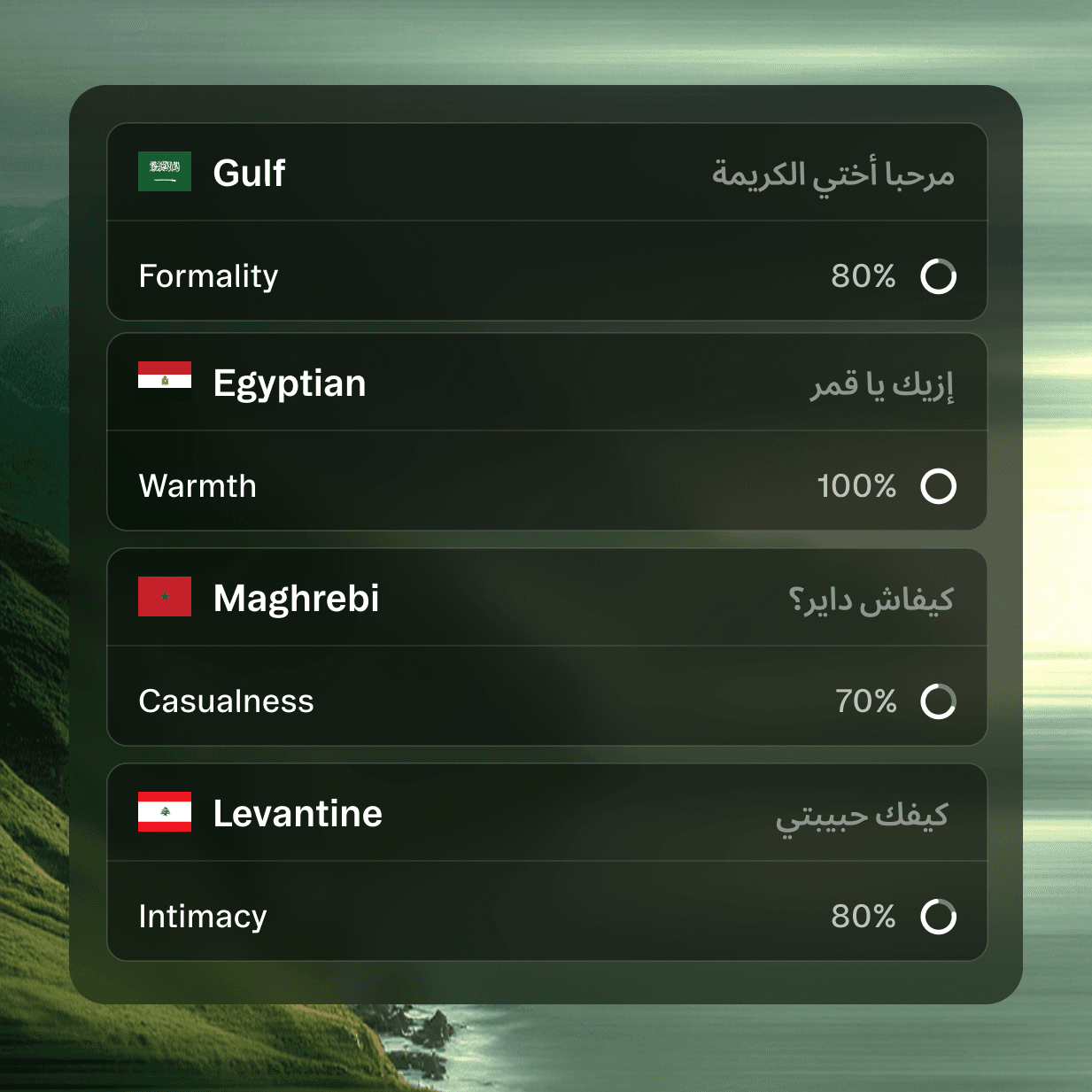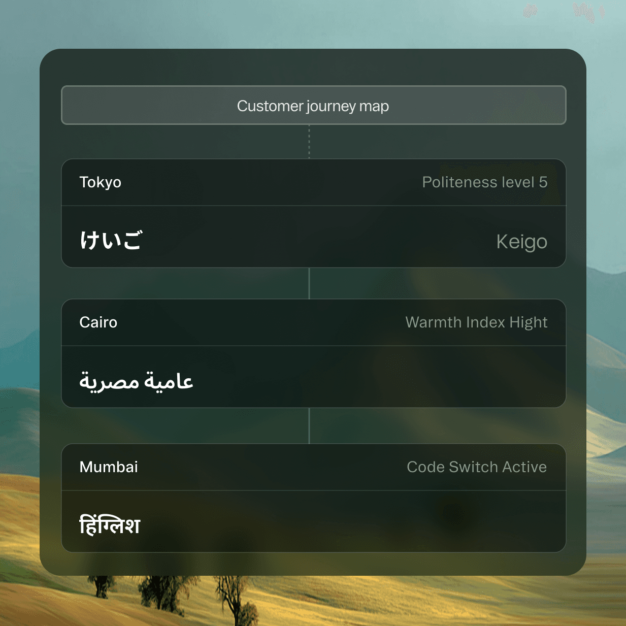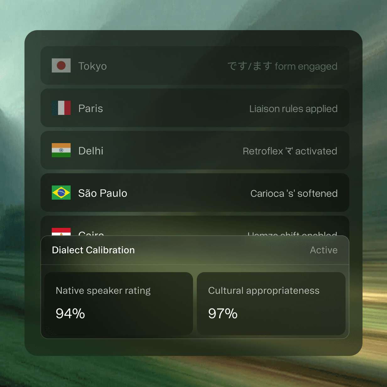 Know cultural preferences before they matter. Our sub-1MB AI predicts language preferences with 89% accuracy, automatically switching between formal Japanese keigo and casual Spanish, understanding when to use Egyptian colloquialisms versus Standard Arabic.