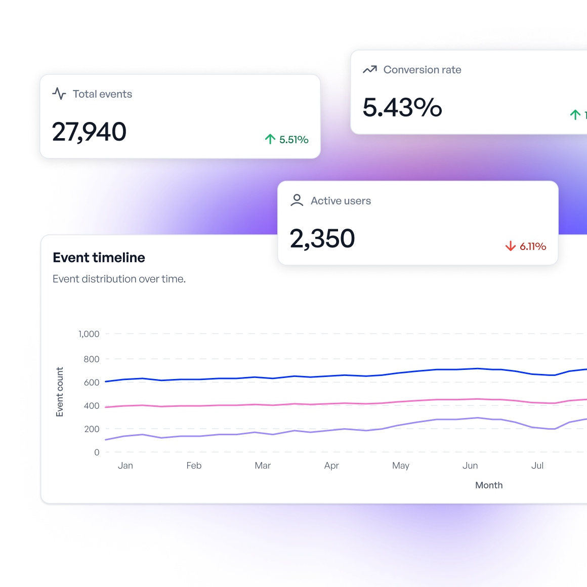 Slice events by type, date, platform, or location to uncover patterns