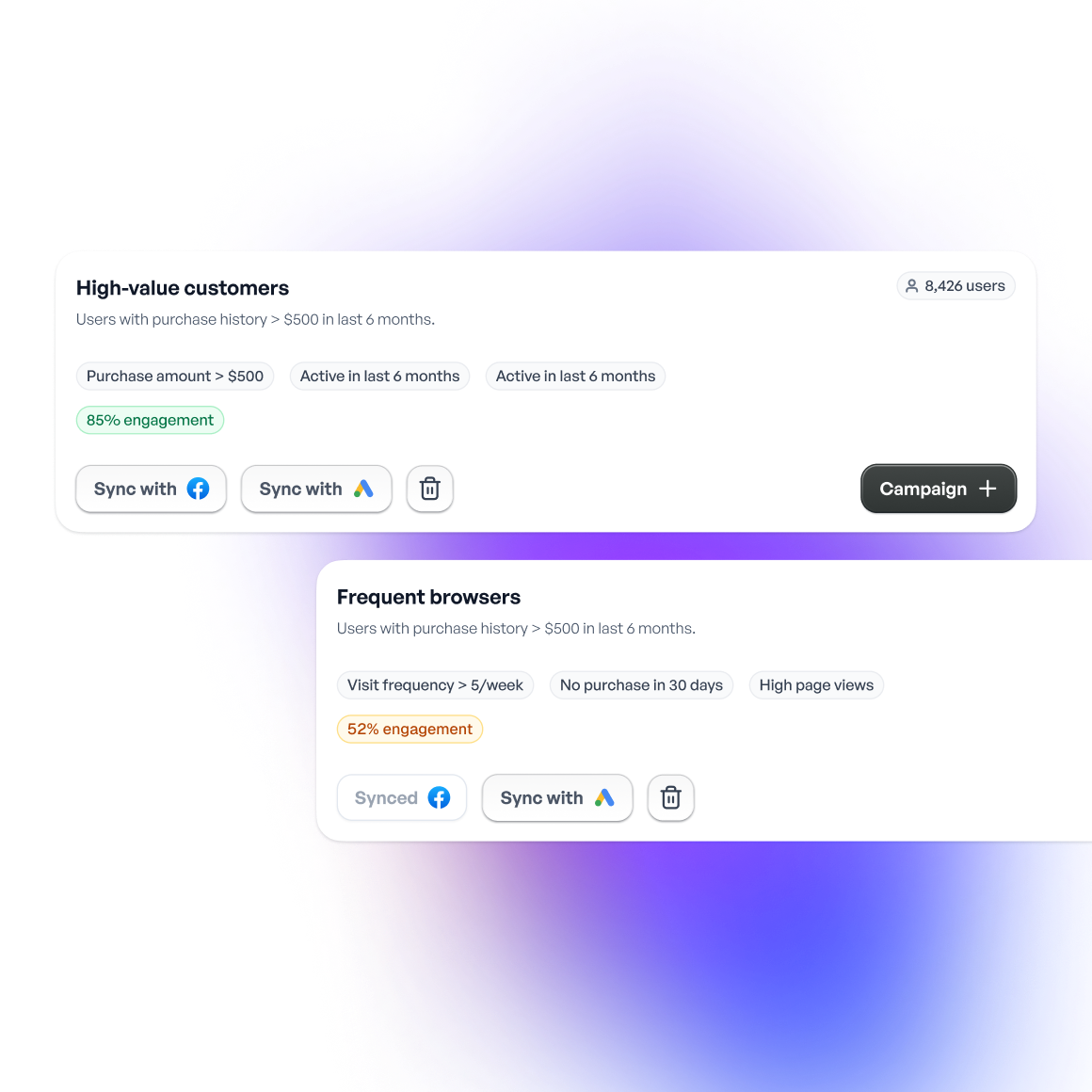 Launch campaigns faster with real-time audience status and seamless activation.